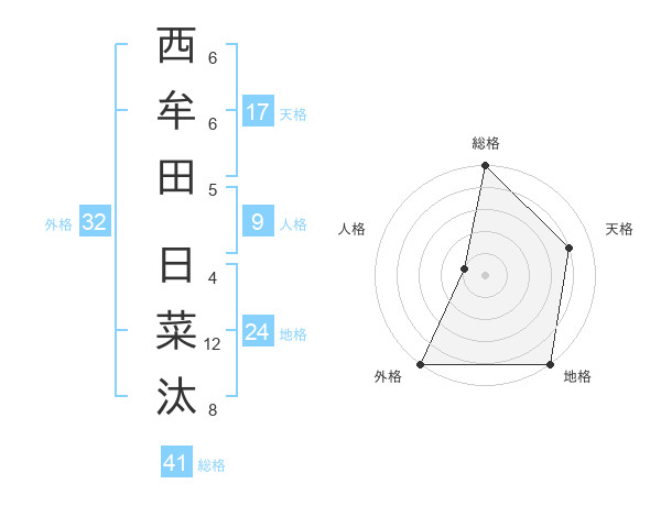西牟田 日菜汰さんを姓名の画数から五運を鑑定