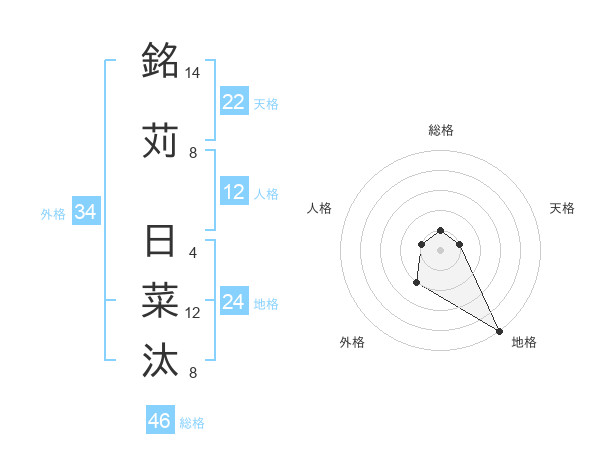 銘苅 日菜汰さんを姓名の画数から五運を鑑定