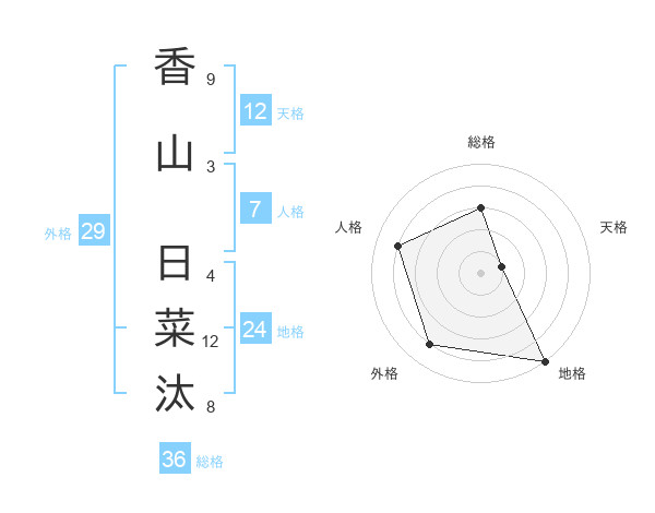 香山 日菜汰さんを姓名の画数から五運を鑑定