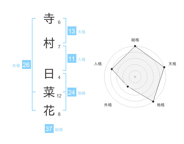 寺村 日菜花さんを姓名の画数から五運を鑑定