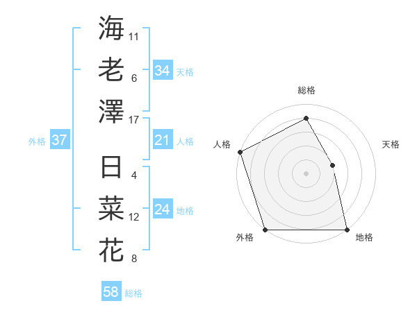 海老澤 日菜花さんを姓名の画数から五運を鑑定