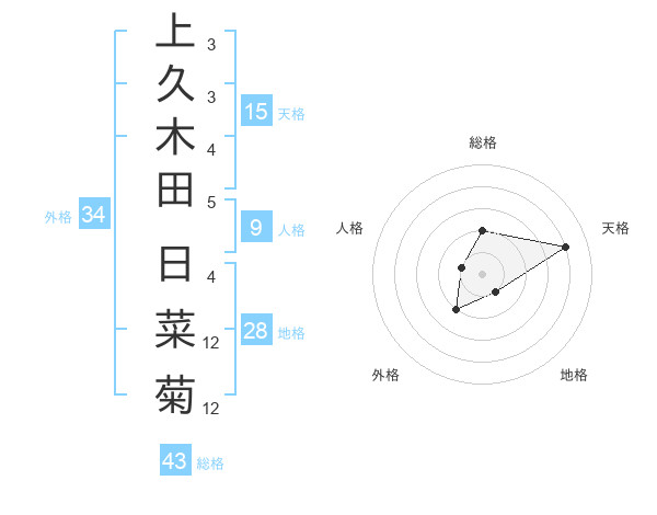 上久木田 日菜菊さんの天格は15画の4点!