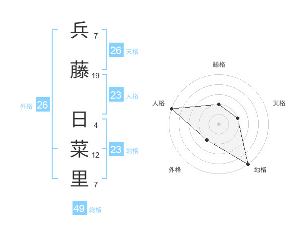 兵藤 日菜里さんを姓名の画数から五運を鑑定