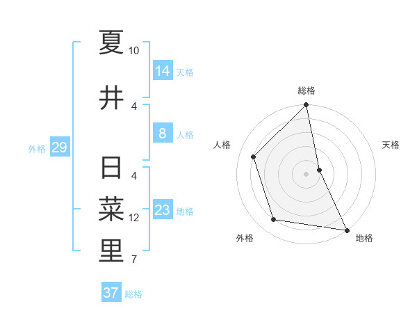 夏井 日菜里さんの総格は37画の5点!