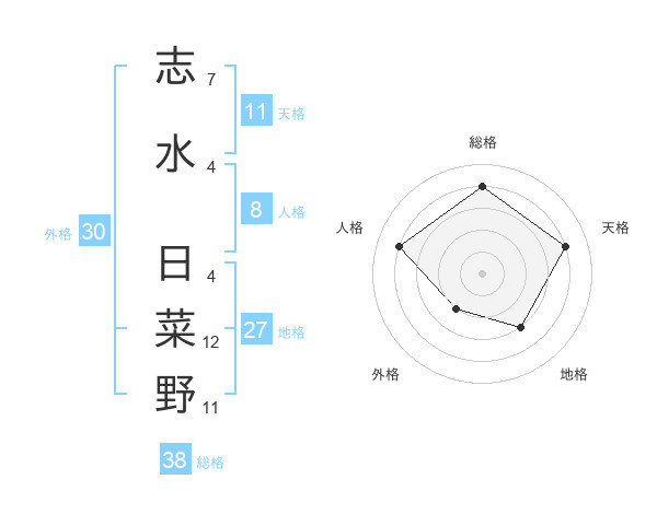 志水 日菜野さんの総格は38画の4点!