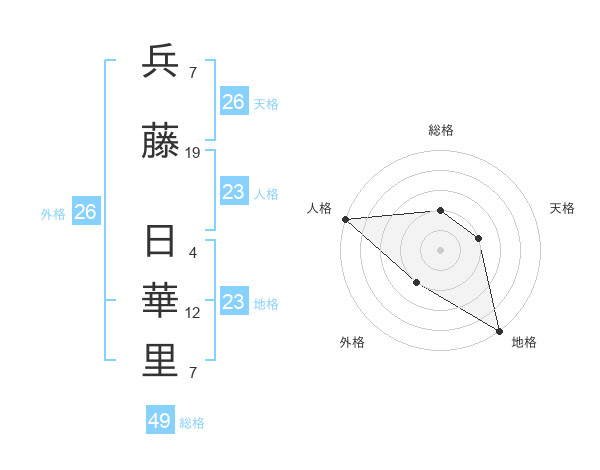 兵藤 日華里さんを姓名の画数から五運を鑑定