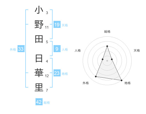 小野田 日華里さんの総格は42画の3点