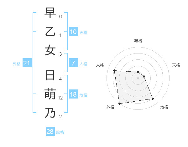 早乙女 日萌乃さんを姓名の画数から五運を鑑定