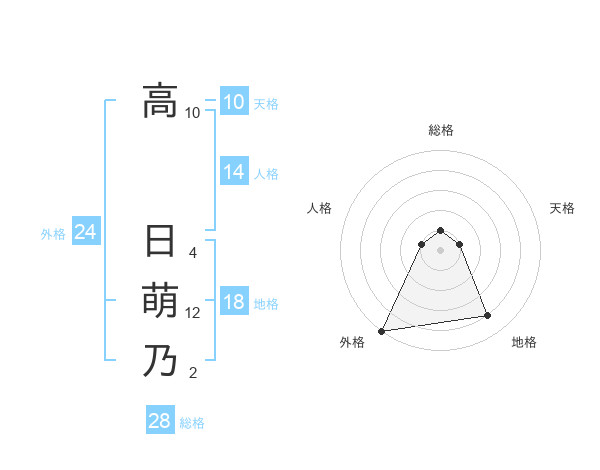 高 日萌乃さんの外格は24画の5点!