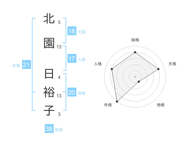 北園 日裕子さんの外格は21画の5点
