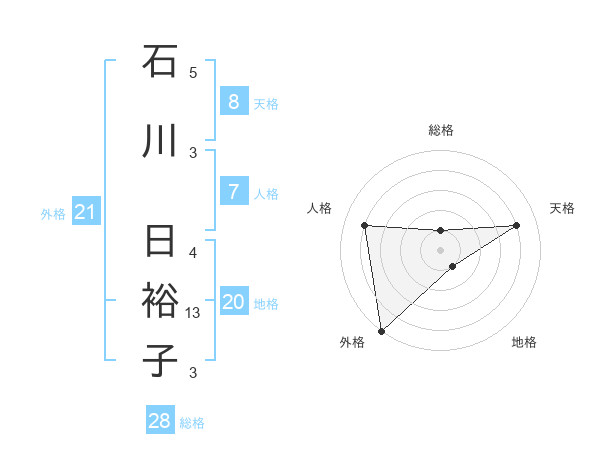 石川 日裕子さんを姓名の画数から五運を鑑定