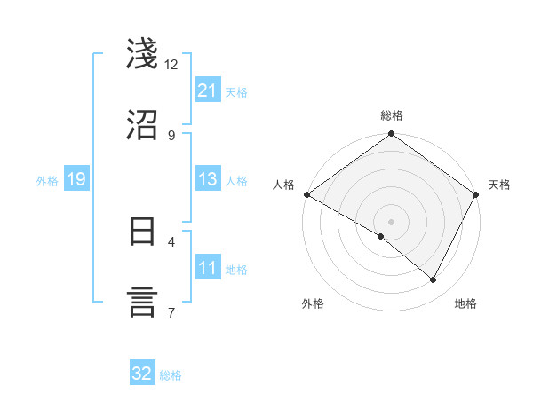 淺沼 日言さんの天格は21画の5点!