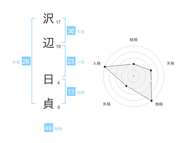 沢辺 日貞さんを姓名の画数から五運を鑑定