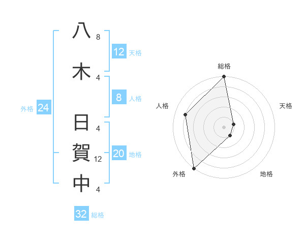 八木 日賀中さんを姓名の画数から五運を鑑定