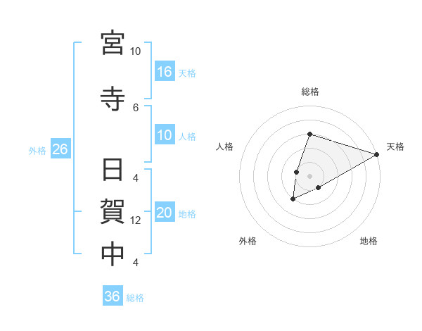 宮寺 日賀中さんを姓名の画数から五運を鑑定