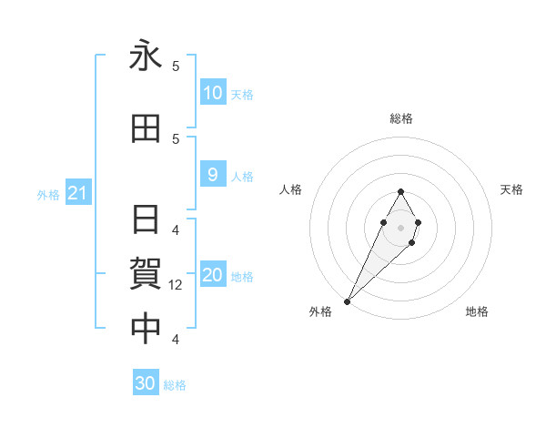 永田 日賀中さんを姓名の画数から五運を鑑定