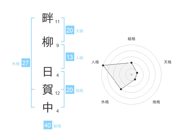 畔柳 日賀中さんを姓名の画数から五運を鑑定