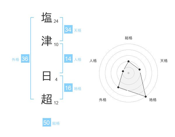 塩津 日超さんの総格は50画の2点!
