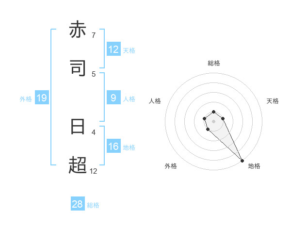 赤司 日超さんの地格は16画の5点!