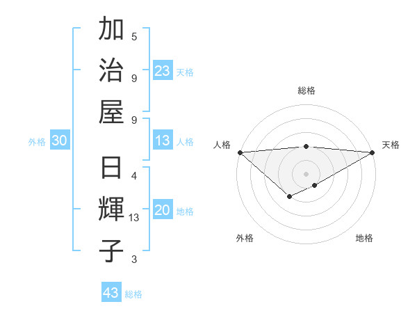 加治屋 日輝子さんの総格は43画の2点