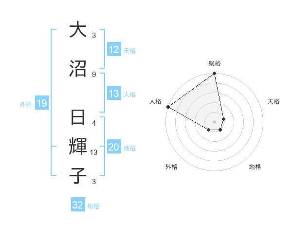 大沼 日輝子さんを姓名の画数から五運を鑑定