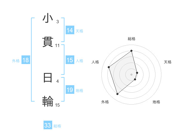 小貫 日輪さんの総格は33画の4点!