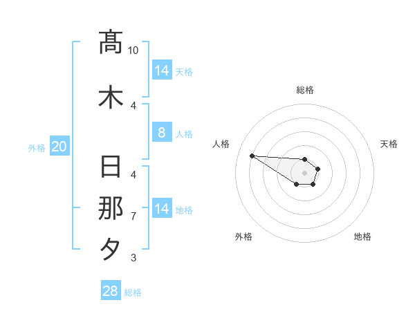 髙木 日那タさんの総格は28画の1点!
