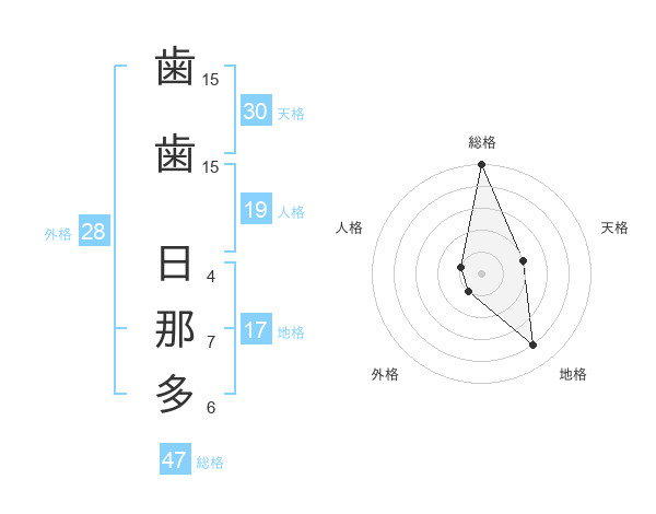 歯歯 日那多さんの総格は47画の5点!