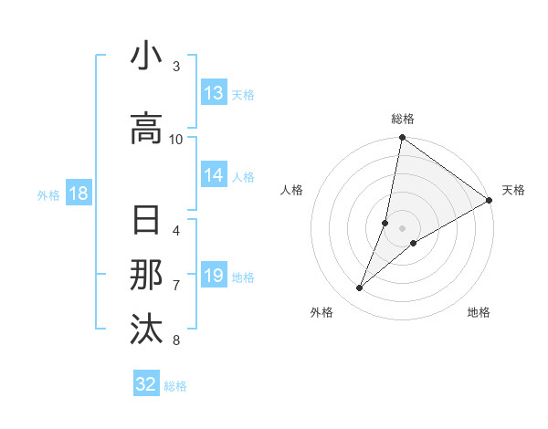 小高 日那汰さんの総格は32画の5点!