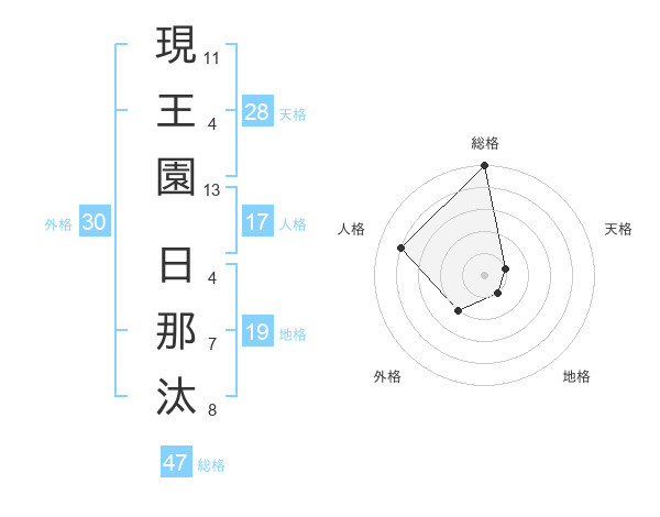 現王園 日那汰さんを姓名の画数から五運を鑑定