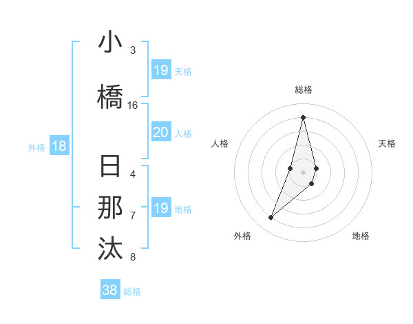 小橋 日那汰さんを姓名の画数から五運を鑑定