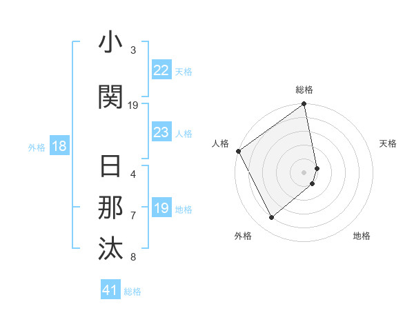 小関 日那汰さんを姓名の画数から五運を鑑定