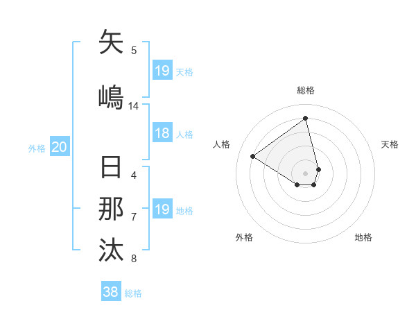 矢嶋 日那汰さんの総格は38画の4点!