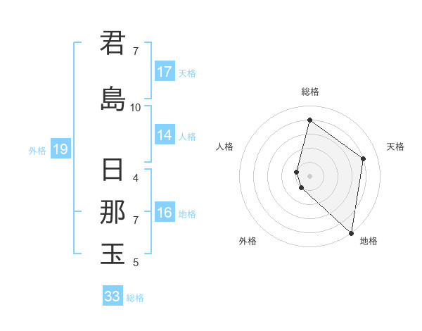 君島 日那玉さんの天格は17画の4点!