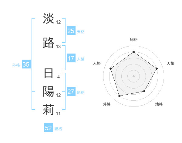 淡路 日陽莉さんの総格は52画の4点!