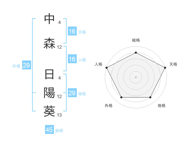 中森 日陽葵さんを姓名の画数から五運を鑑定