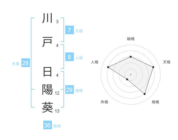 川戸 日陽葵さんの外格は28画の1点