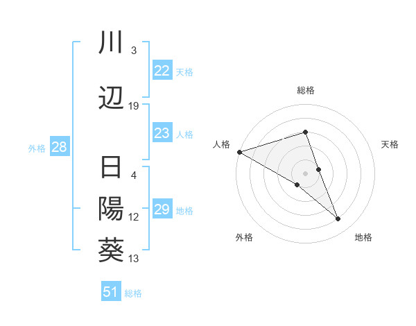 川辺 日陽葵さんを姓名の画数から五運を鑑定