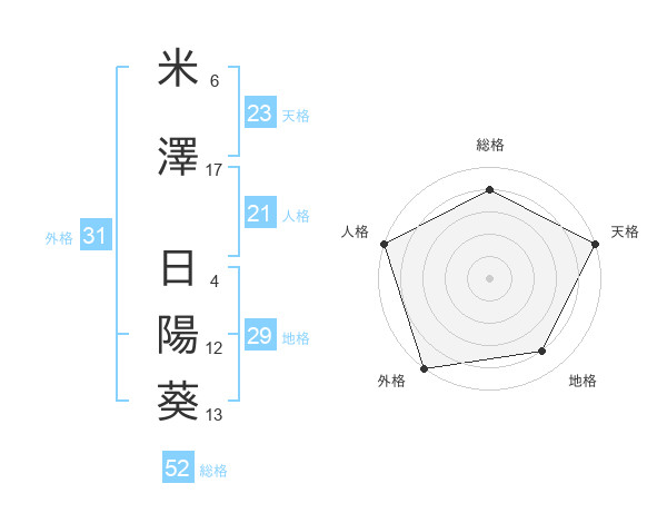 米澤 日陽葵さんを姓名の画数から五運を鑑定
