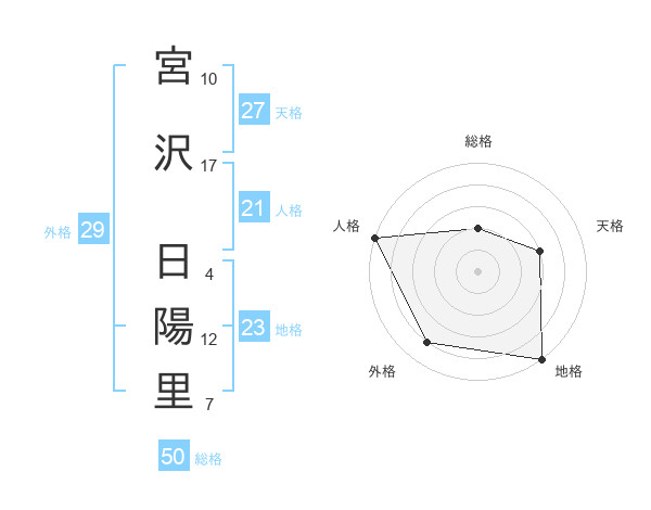 宮沢 日陽里さんを姓名の画数から五運を鑑定