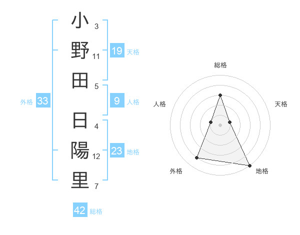 小野田 日陽里さんを姓名の画数から五運を鑑定
