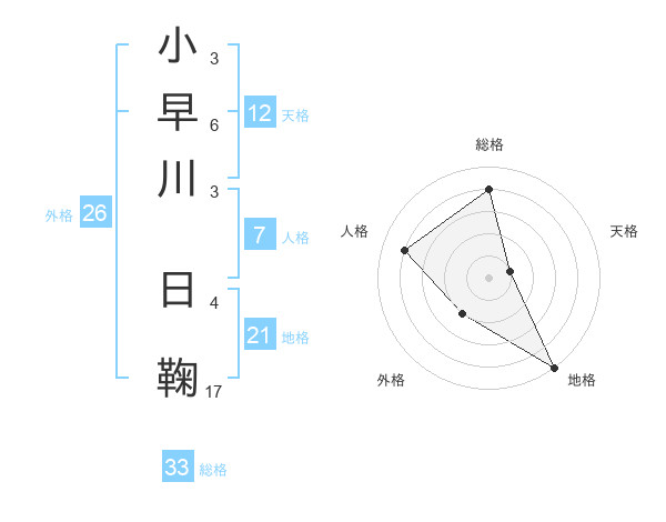 小早川 日鞠さんを姓名の画数から五運を鑑定
