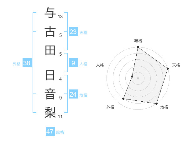 与古田 日音梨さんを姓名の画数から五運を鑑定