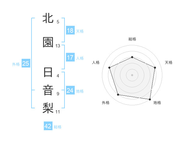 北園 日音梨さんを姓名の画数から五運を鑑定