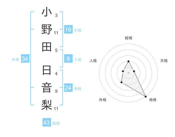 小野田 日音梨さんを姓名の画数から五運を鑑定