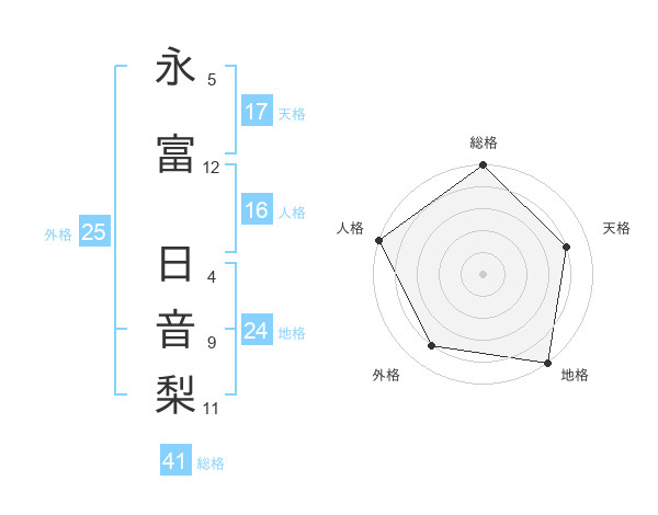 永富 日音梨さんの総格は41画の5点!