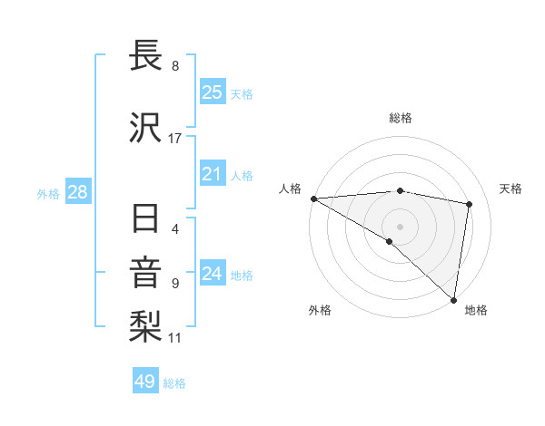 長沢 日音梨さんの地格は24画の5点!