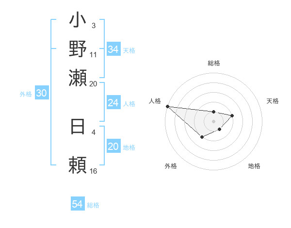 小野瀬 日頼さんを姓名の画数から五運を鑑定