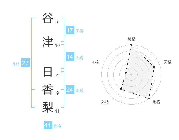 谷津 日香梨さんを姓名の画数から五運を鑑定