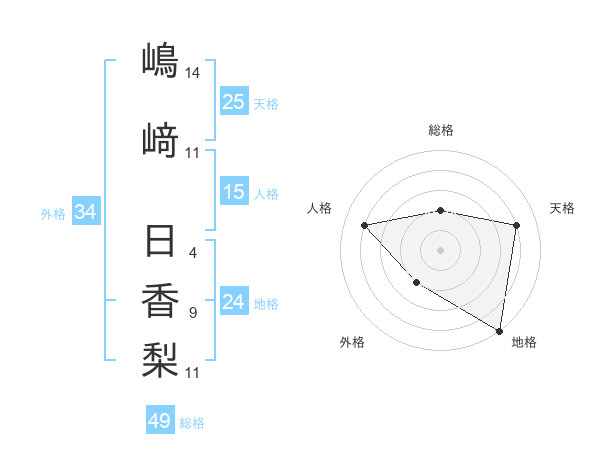 嶋﨑 日香梨さんの総格は49画の2点!